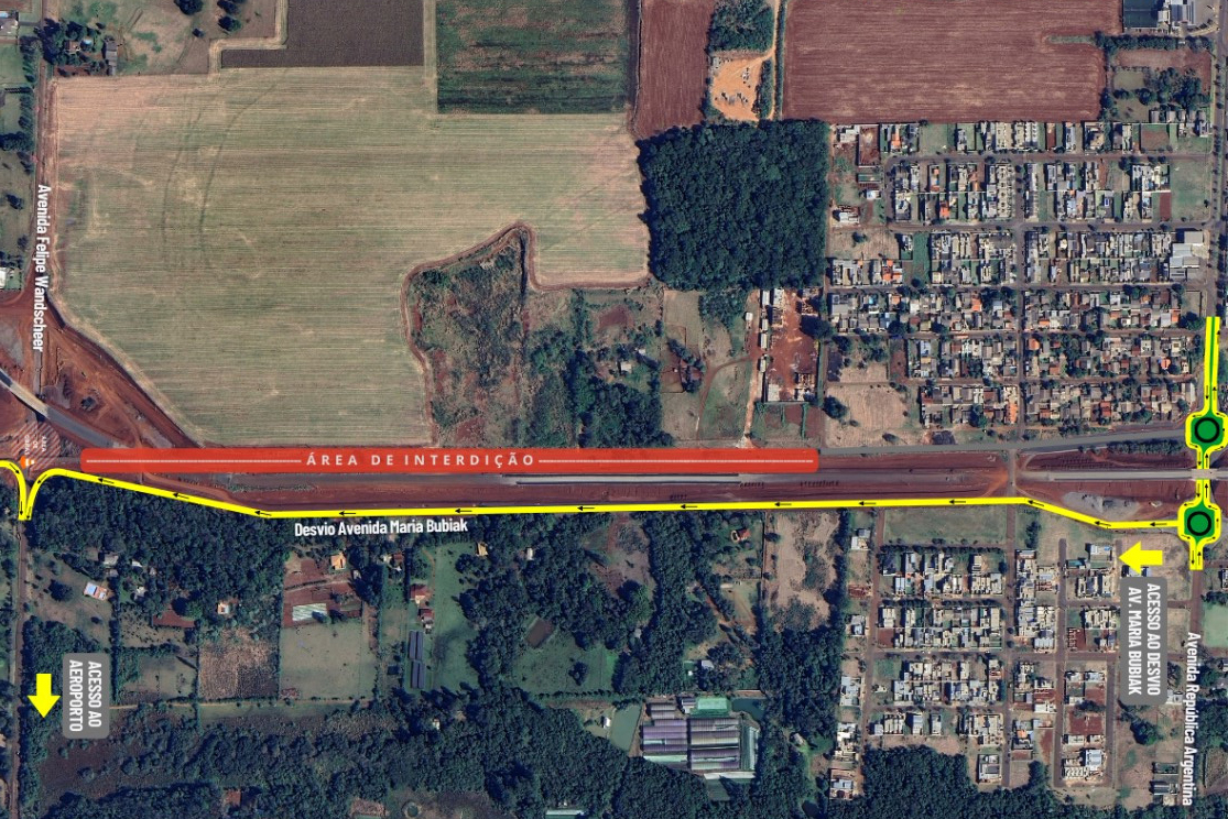 O desvio pode ser acessado pela rótula após o viaduto da Av. República Argentina, devendo ser utilizado para acesso ao Centro e ao Aeroporto por usuários que normalmente passam pela Avenida Maria Bubiak.