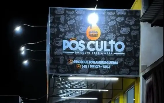 Nas imagens, a mulher aparece ao lado do marido quando percebe que uma hamburgueria chamada “Pós Culto” estava aberta. Surpresa com o nome do estabelecimento, ela comenta sobre a proposta do local e decide entrar para conhecer. Ao chegar à hamburgueria, a mulher cumprimenta as pessoas presentes com uma saudação tradicional do meio evangélico, recebendo respostas de quem estava no local.