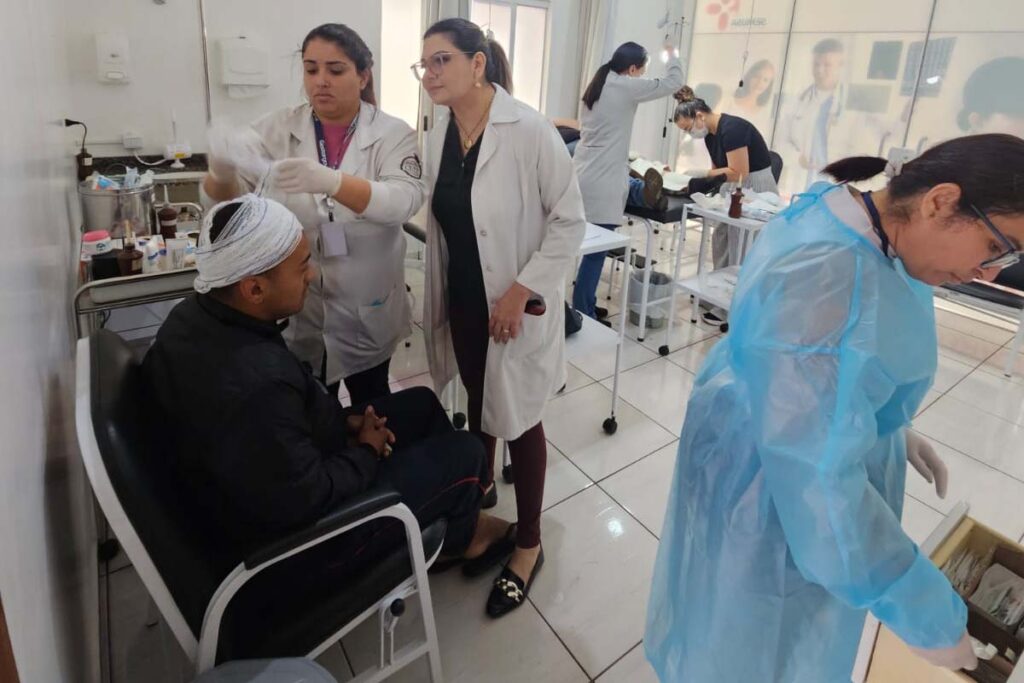 Os pacientes foram levados para o corredor numa força-tarefa da equipe que foi atendendo, suturando, limpando, medicando. “Eram ferimentos grandes, com bastante sujidade, então já fomos aplicando medicamento profilático”, explicou.