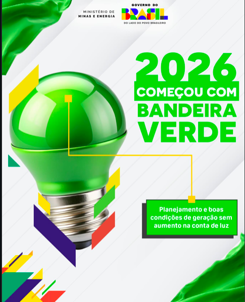 Janeiro de 2026 começa com alívio no bolso dos brasileiros: a conta de luz terá bandeira verde, o que significa energia elétrica sem cobrança extra.