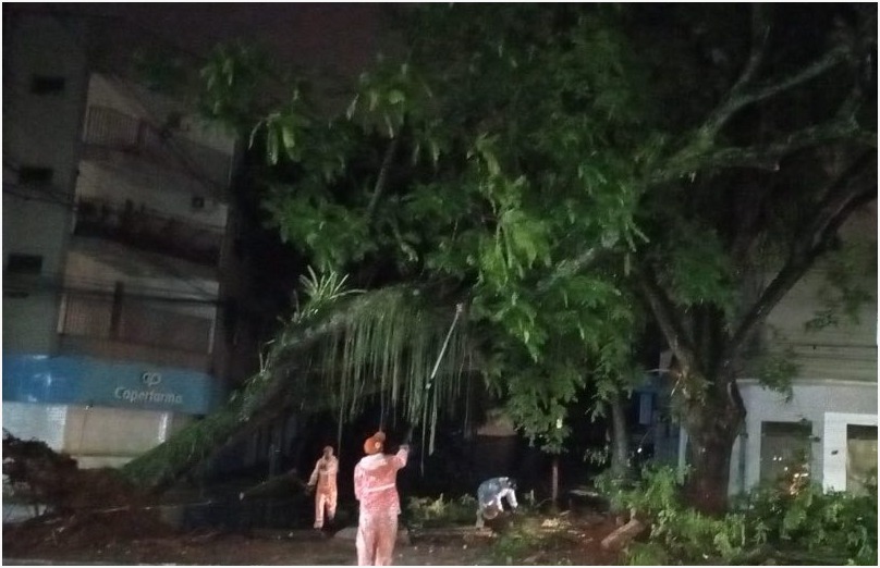 A chuva acompanhada de fortes rajadas de vento na noite de domingo (16) provocou diversos estragos em Foz do Iguaçu. A precipitação começou por volta das 19h e acumulou cerca de 30 mm até as 22h, segundo dados dos pluviômetros automáticos do CEMADEN.