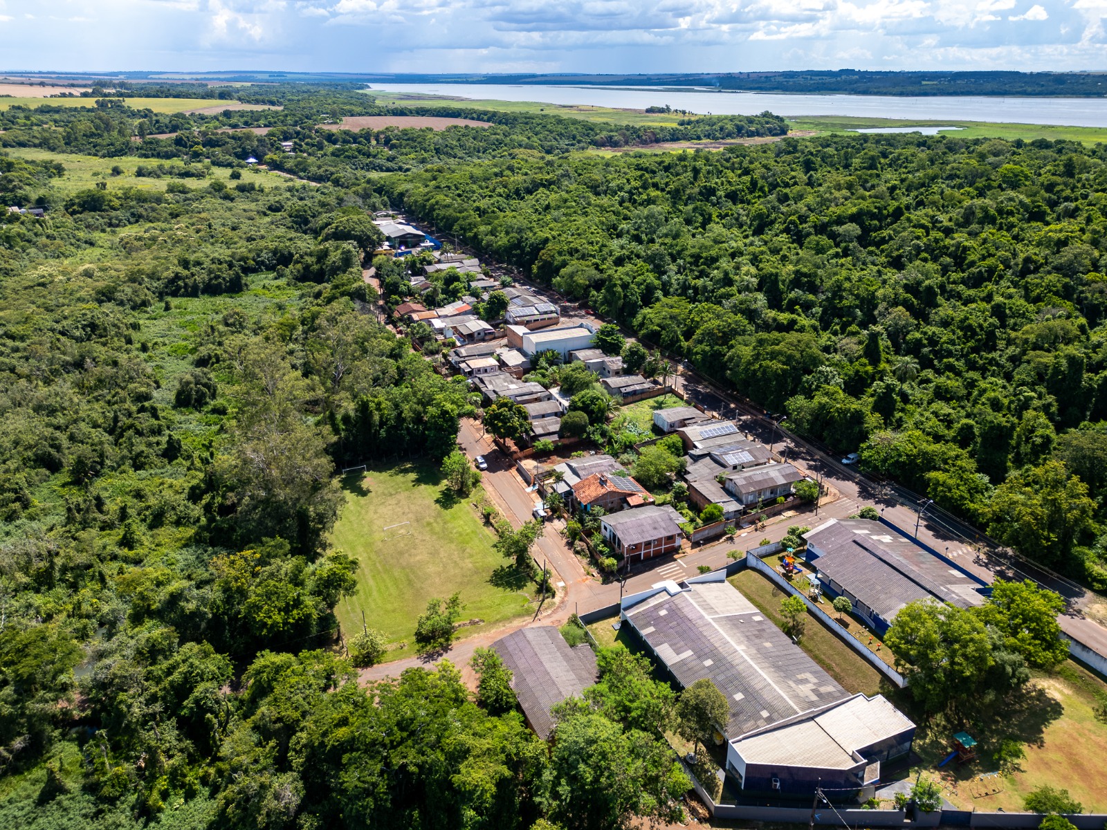 Vista aérea da área transferida. CMEI será construído na área do campinho de futebol. Foto: William Brisida/Itaipu Binacional.