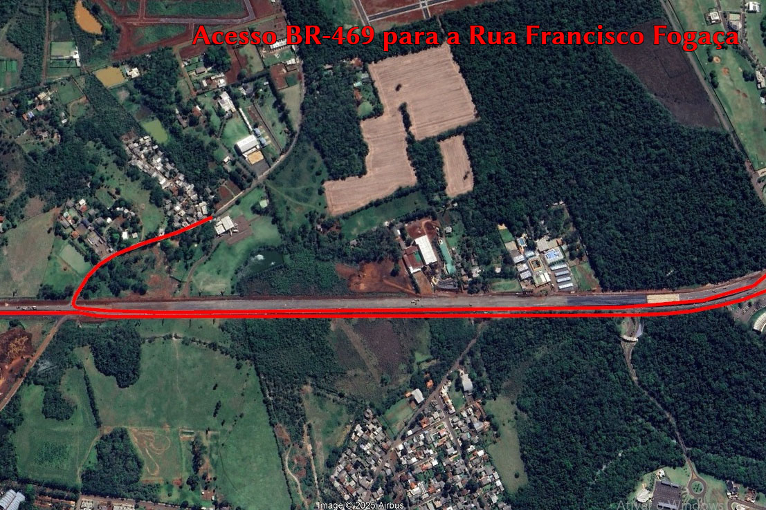 E usuários que estiverem vindo do centro de Foz do Iguaçu, e quiserem acessar a Rua Francisco Fogaça, devem fazer o retorno em frente ao Hotel Wish Resort. Outra alternativa é utilizar a Rua Itaboraí par acessar a rodovia.
