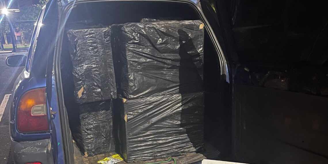 As equipes localizaram e abordaram o automóvel, um Toyota RAV4 azul, que estava adaptado para o transporte de carga, possuindo apenas o banco do motorista. No interior do veículo, foram encontradas 12 caixas de cigarros, totalizando cerca de 6 mil maços.