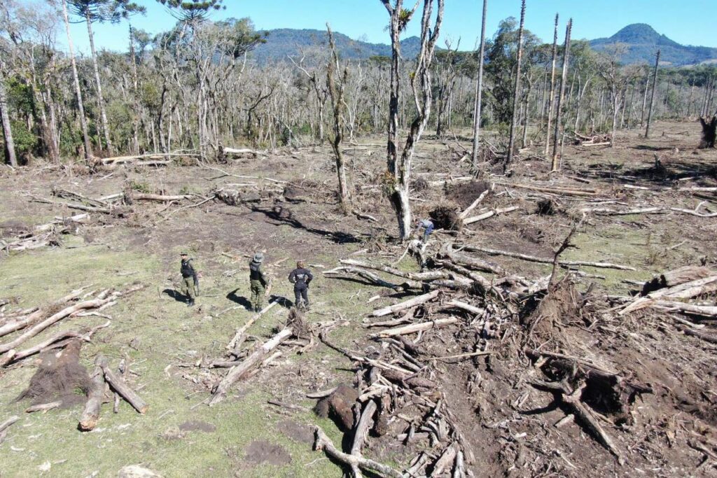 De acordo com as investigações, o suspeito teria promovido a destruição de aproximadamente 106 hectares da Floresta Ombrófila Mista, pertencente ao bioma Mata Atlântica, em estágio médio avançado de regeneração. A área, localizada em Rio Azul, incluía trechos de preservação permanente, como nascentes e margens de córregos.