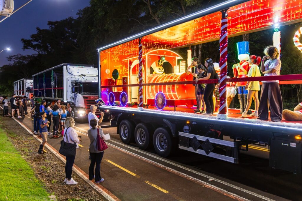 A programação natalina promovida pela Itaipu Binacional e pelo Itaipu Parquetec vai transformar as ruas de Foz do Iguaçu (PR) em um grande palco a céu aberto nesta sexta-feira (19) e sábado (20), com a realização do Desfile de Natal. Carros alegóricos iluminados, personagens mágicos e muita fantasia prometem encantar adultos e crianças.