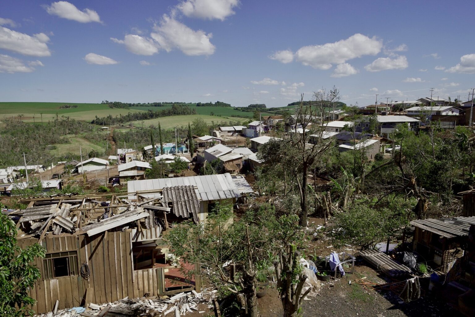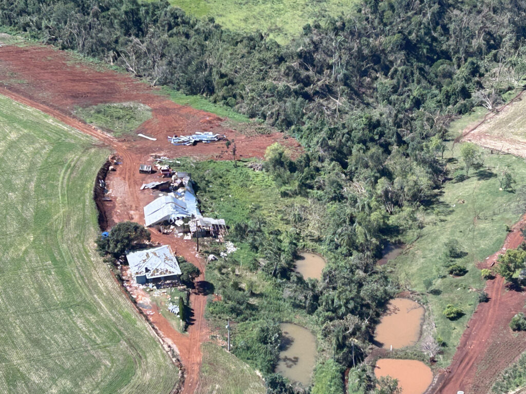 Além da cidade de Rio Bonito do Iguaçu, as tempestades do dia 7 deixaram um rastro de destruição no campo, com torres de energia caídas, construções destruídas e até mesmo silos retorcidos.