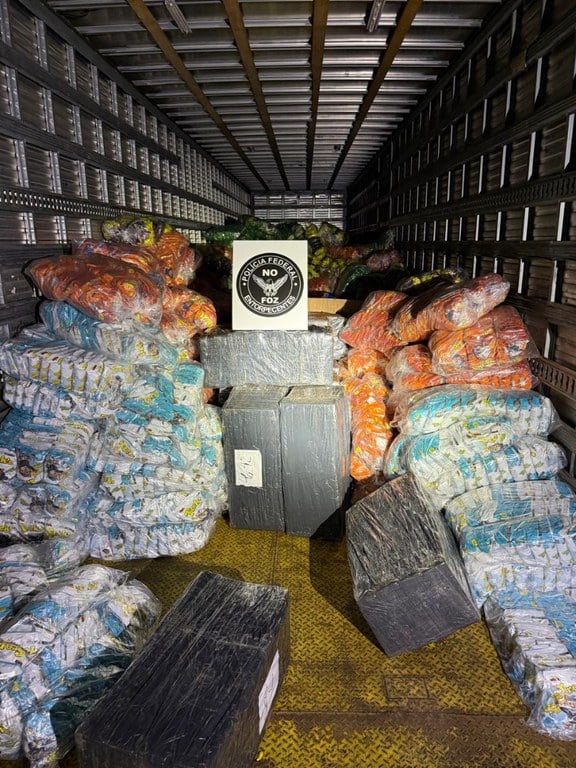 A Polícia Federal prendeu em flagrante, na noite de sexta-feira (10), um motorista que transportava mais de 1,2 tonelada de maconha escondida em meio a uma carga de salgadinhos. A apreensão aconteceu durante uma fiscalização na BR-277, em Céu Azul, no Oeste do Paraná.